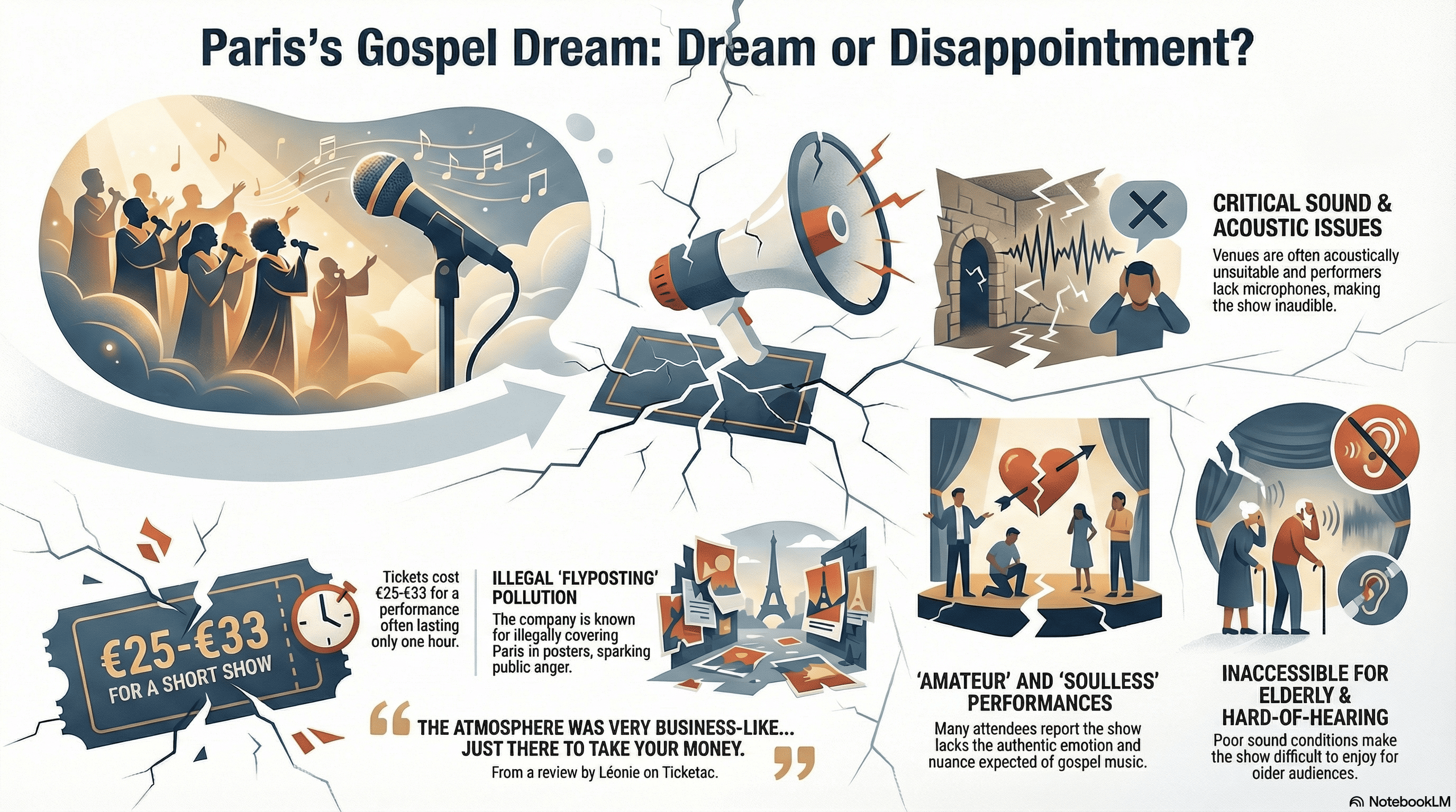 We went to Gospel Dream so you don't have to: Reviews of the Parisian show Gospel Dream reveals recurring structural issues rather than isolated incidents.